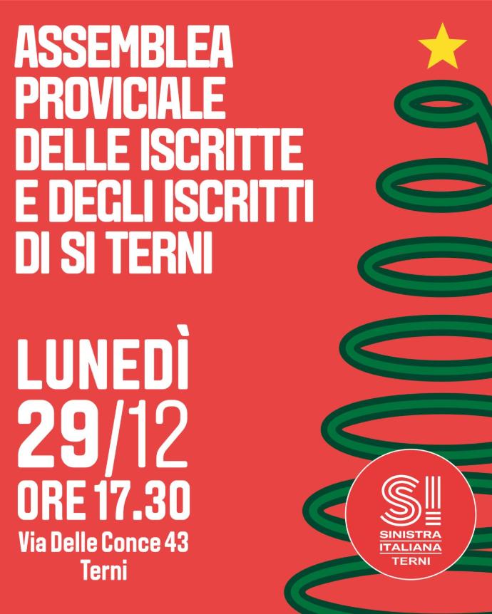 È convocata l’Assemblea provinciale delle iscritte e degli iscritti di Sinistra Italiana della provincia di Terni.