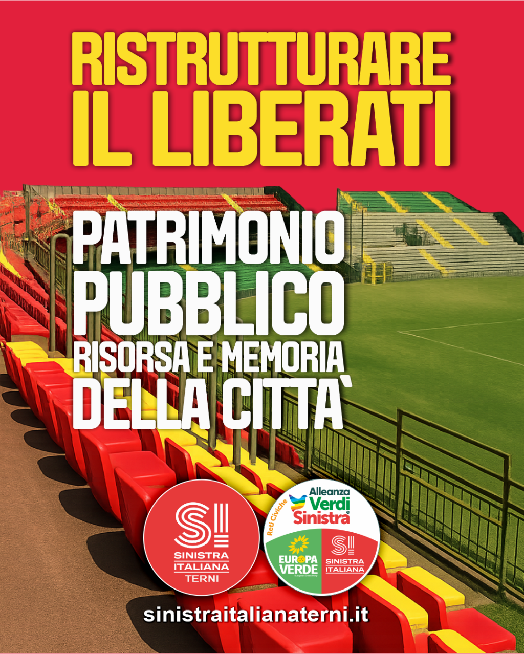 In occasione dell’affissione dei nostri manifesti in città, ribadiamo con forza una posizione chiara: lo stadio Libero Liberati è un bene pubblico, una risorsa fondamentale e una memoria viva della comunità ternana. Per questo, secondo noi, deve essere ristrutturato e riqualificato come patrimonio collettivo, attraverso investimenti pubblici e procedure trasparenti, non attraverso scorciatoie o operazioni opache a vantaggio del privato.